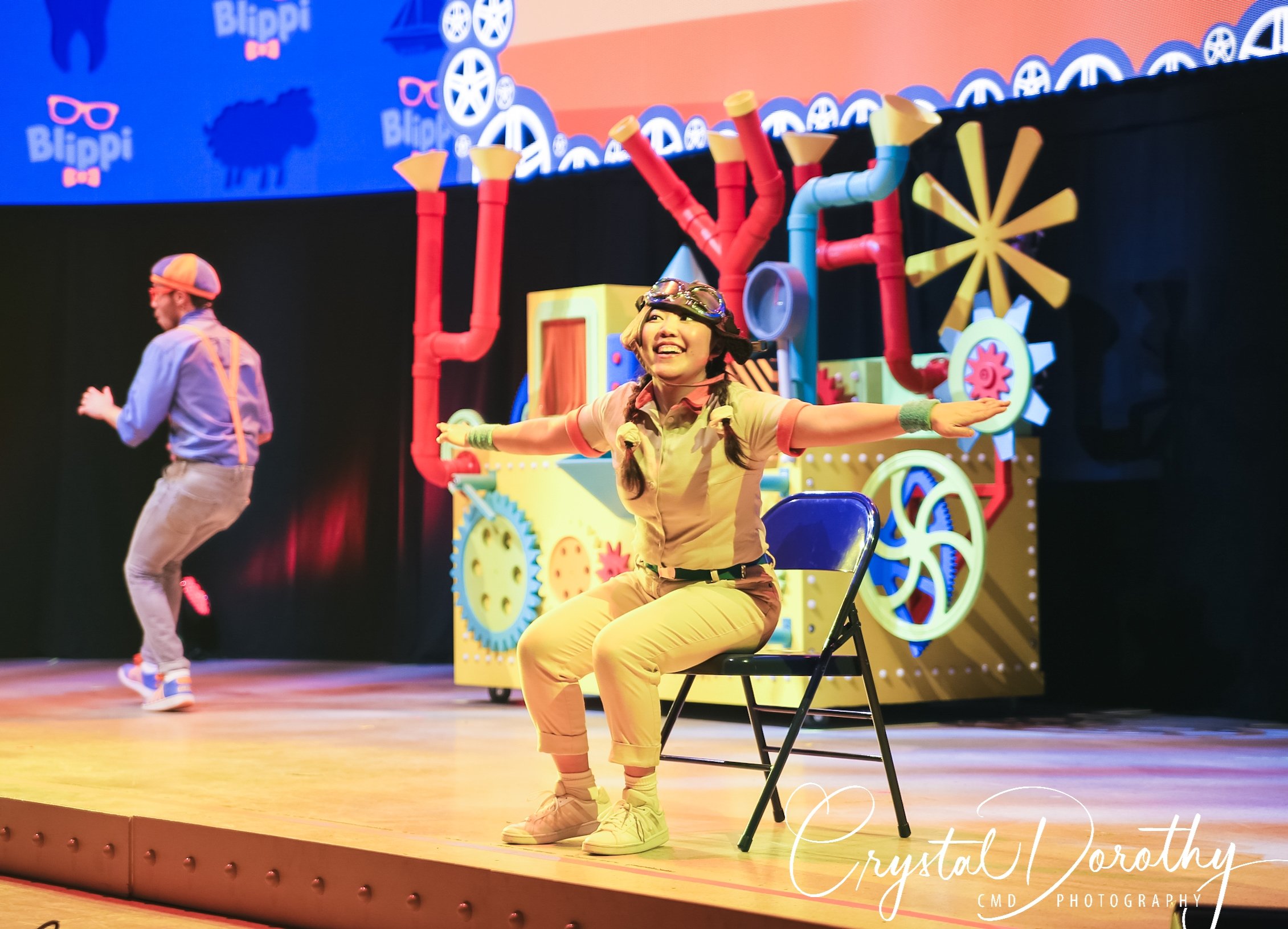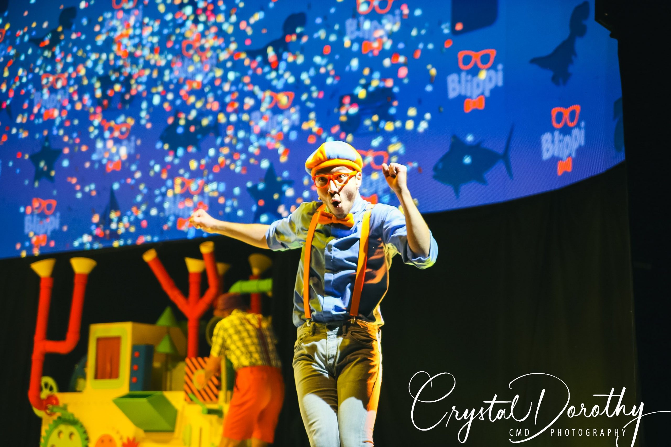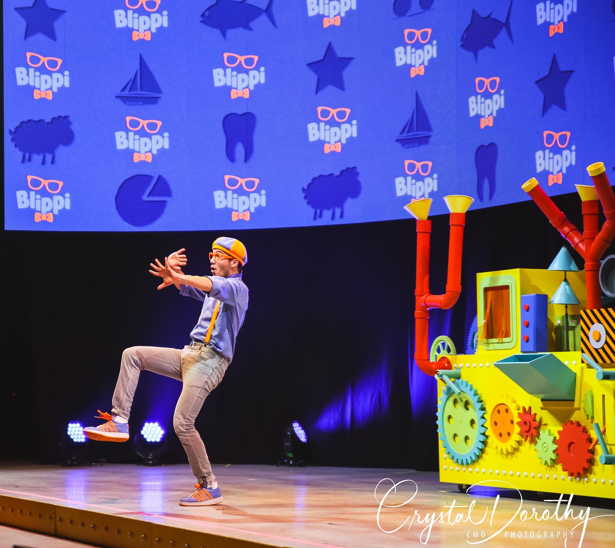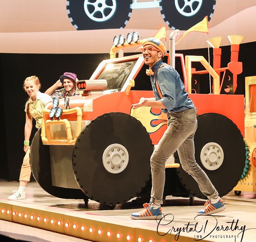 Tuesday night we had the opportunity to go see & review the newest addition to the “Blippi-verse,” Blippi Live. Needless to say, the kids were overjoyed. I was slightly nervous, wondering if they would realize that the “Blippi” they were seeing in person wasn’t actually Stevin John and I’d have to potentially defuse a bad situation. However, the gentleman that they chose to portray Blippi, was pretty spot on. If I hadn’t spent more hours than I’d like to admit staring at the “real” Blippi, (thanks to Finn for watching him on repeat), I’d likely never know the difference. The kids were utterly entranced the entire time he was on stage.