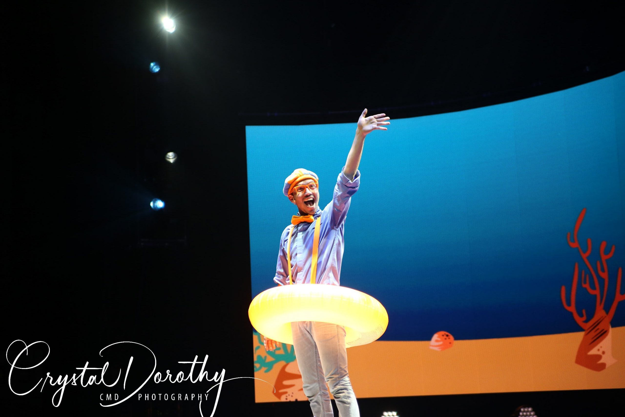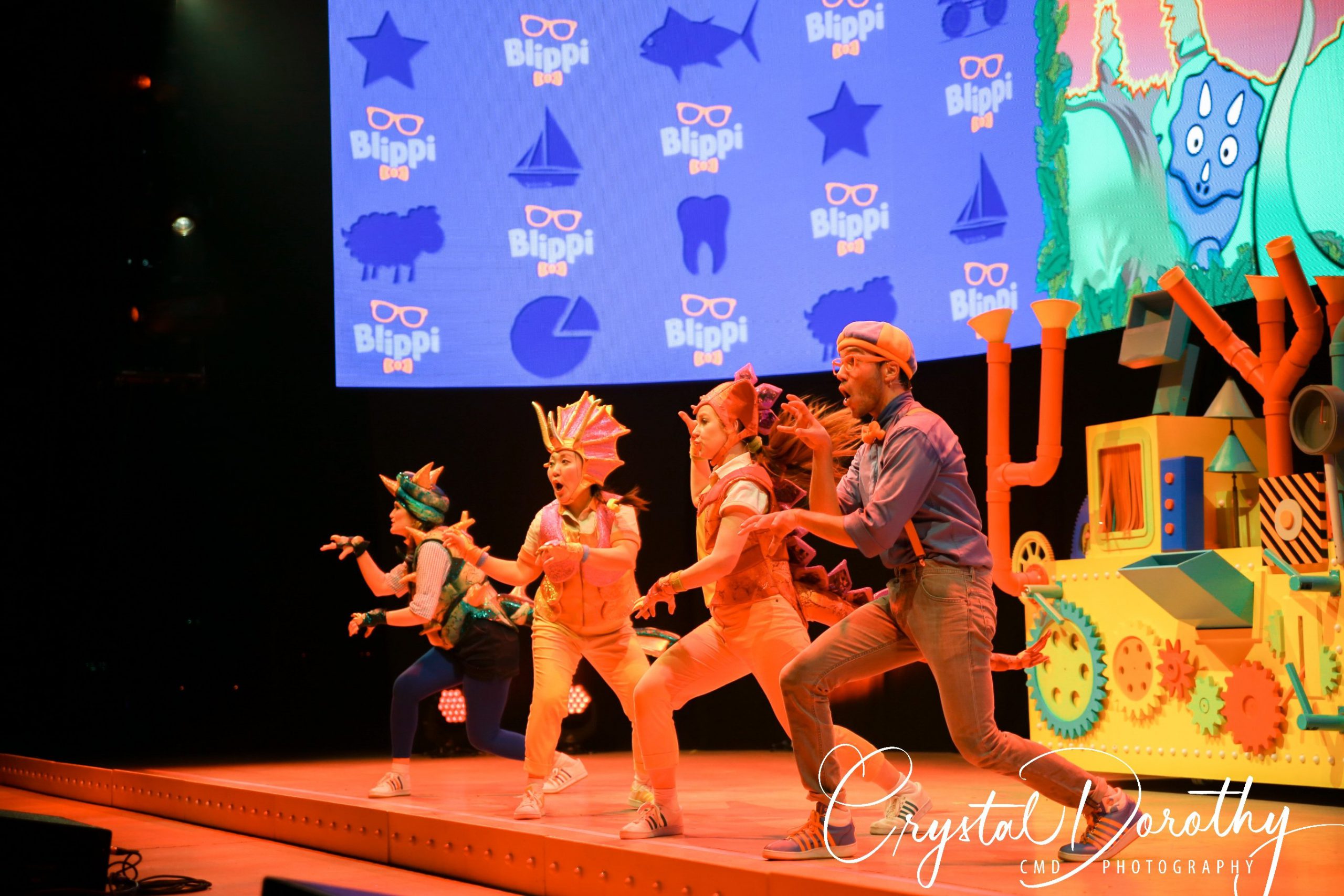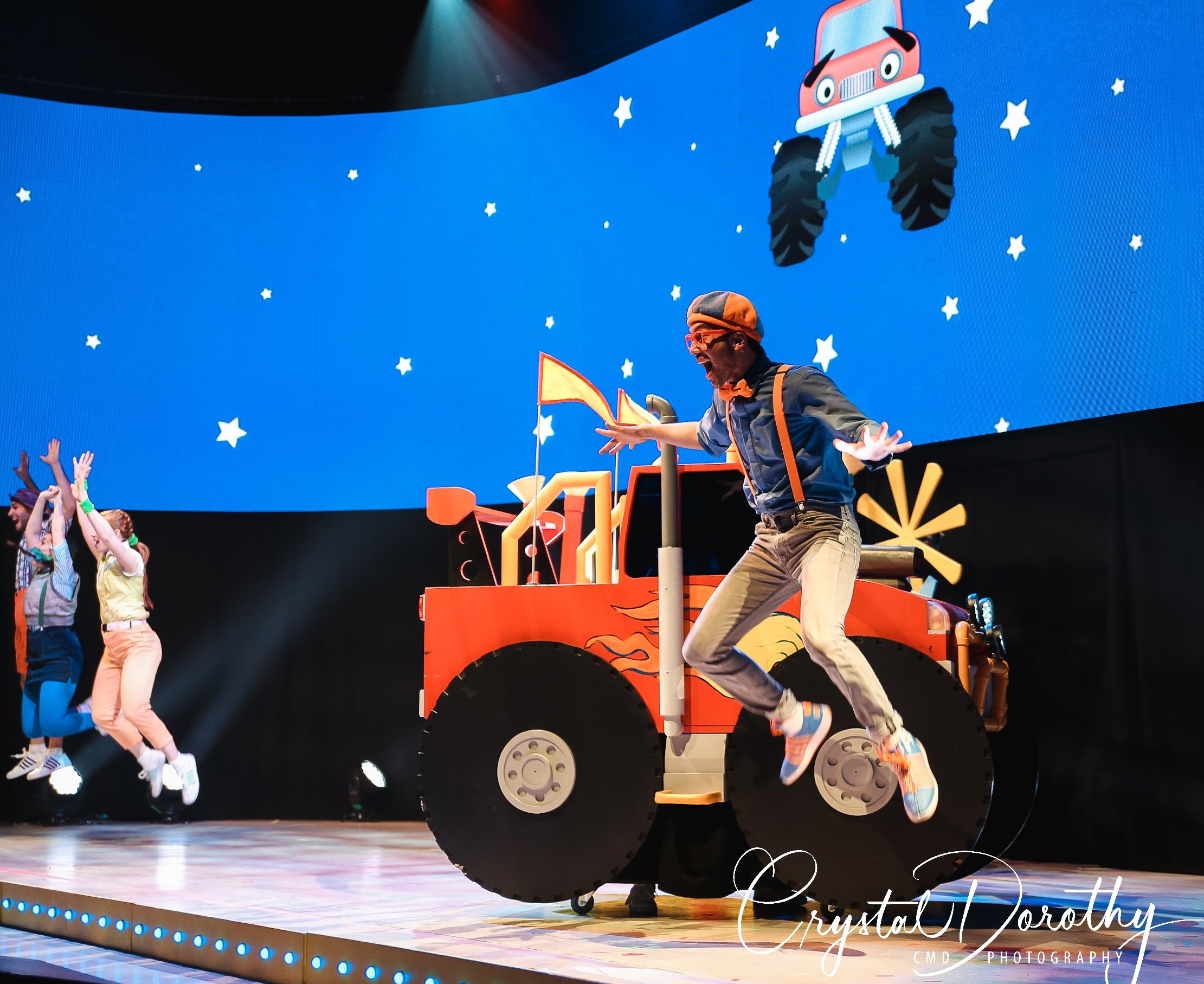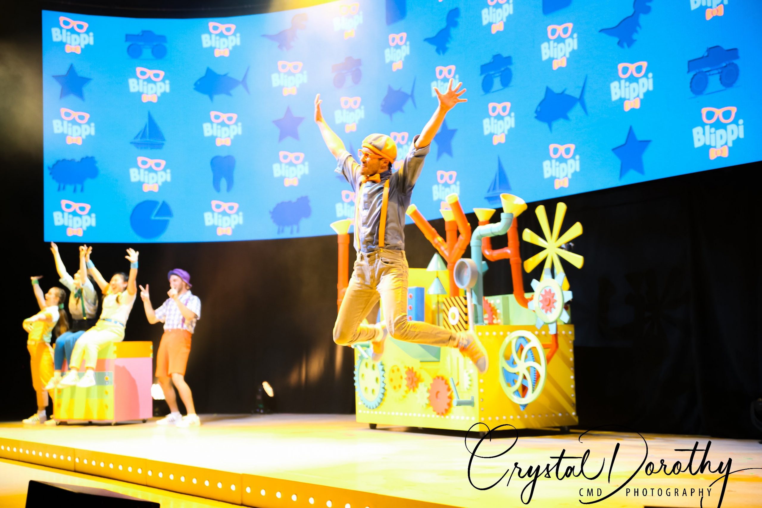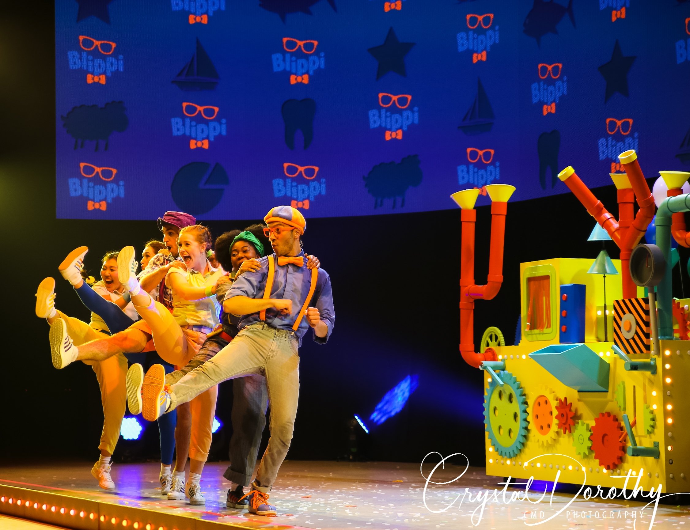 Tuesday night we had the opportunity to go see & review the newest addition to the “Blippi-verse,” Blippi Live. Needless to say, the kids were overjoyed. I was slightly nervous, wondering if they would realize that the “Blippi” they were seeing in person wasn’t actually Stevin John and I’d have to potentially defuse a bad situation. However, the gentleman that they chose to portray Blippi, was pretty spot on. If I hadn’t spent more hours than I’d like to admit staring at the “real” Blippi, (thanks to Finn for watching him on repeat), I’d likely never know the difference. The kids were utterly entranced the entire time he was on stage.