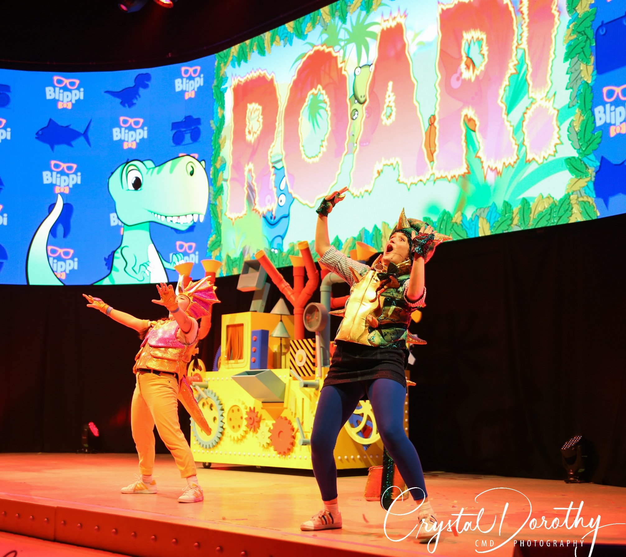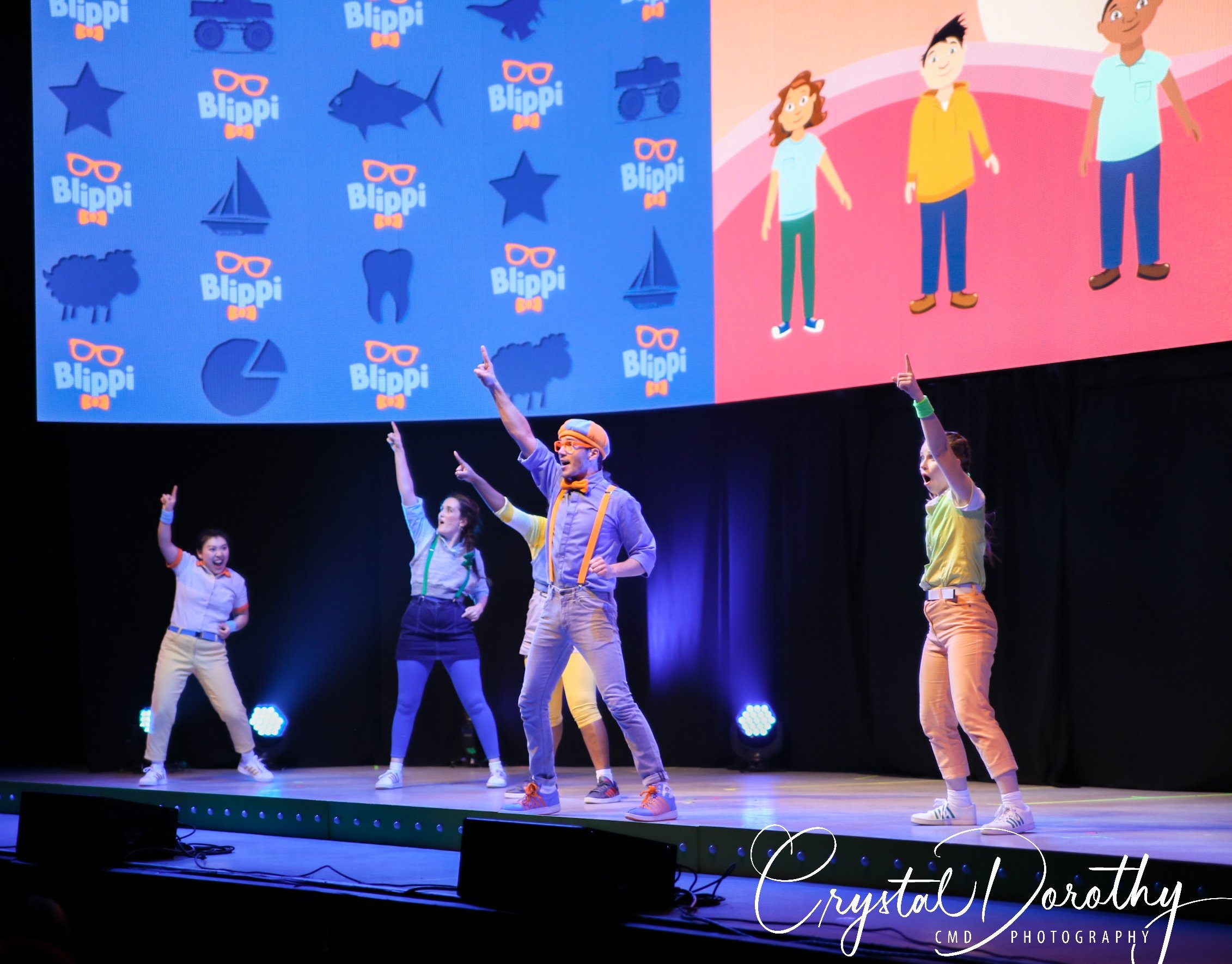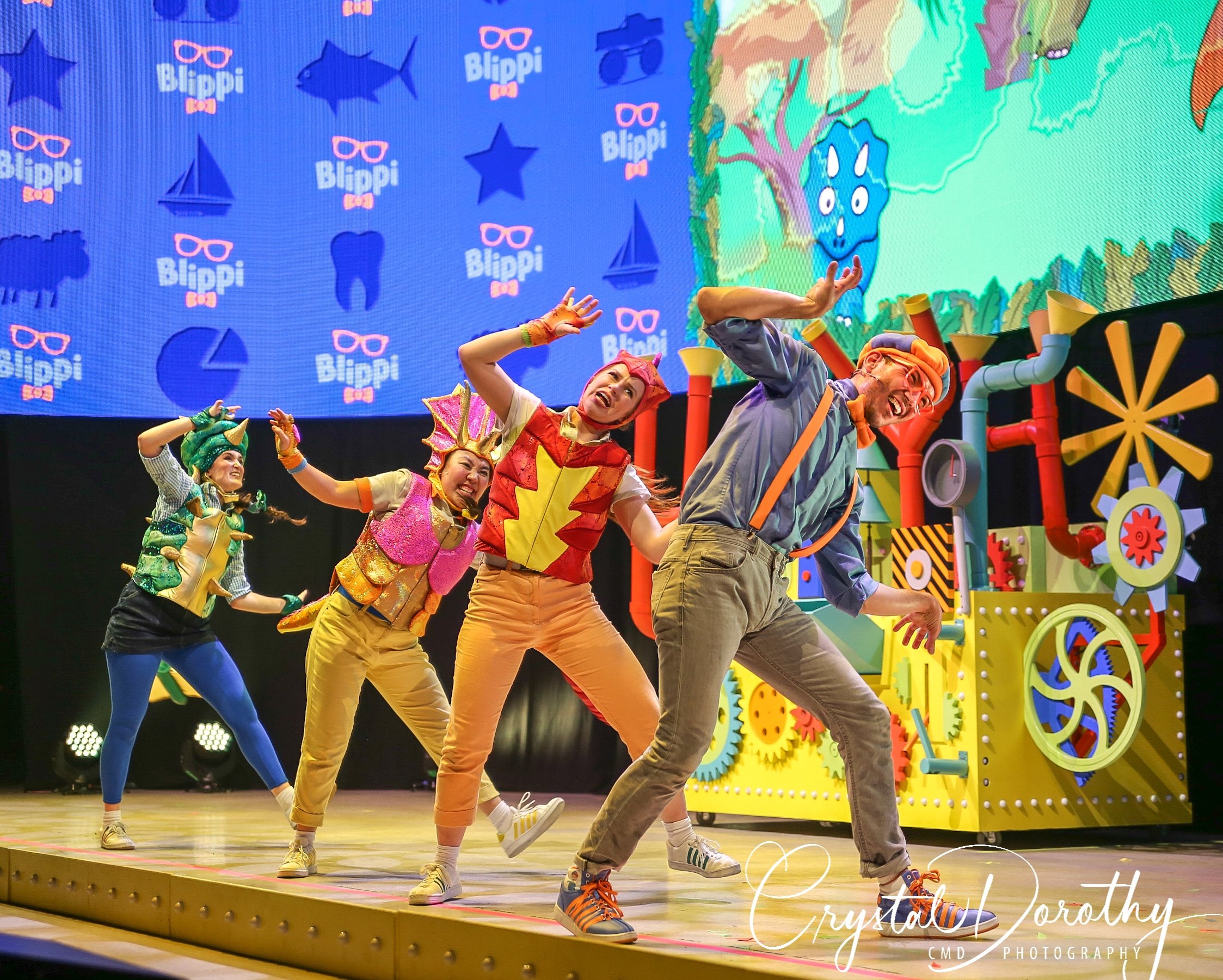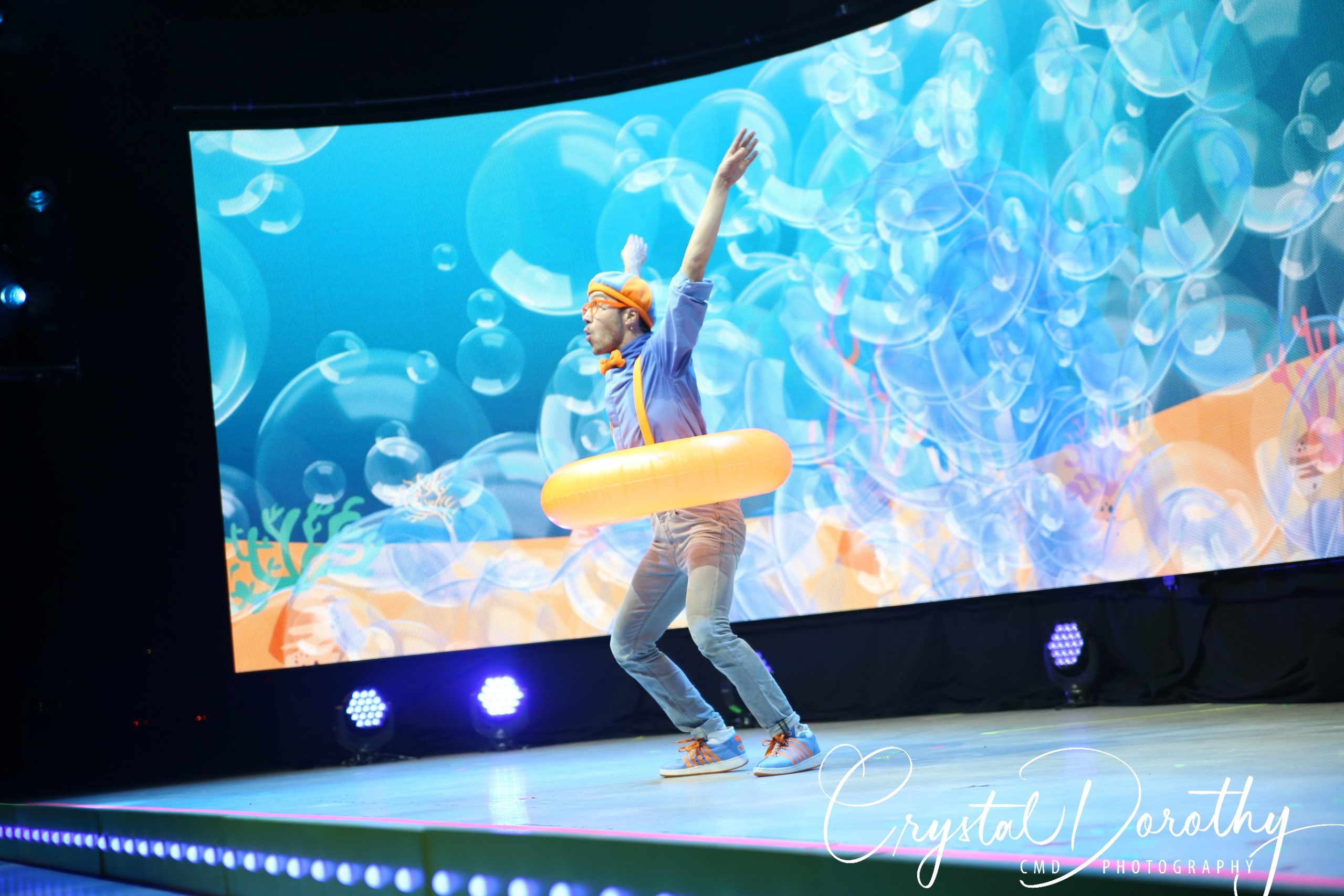 Tuesday night we had the opportunity to go see & review the newest addition to the “Blippi-verse,” Blippi Live. Needless to say, the kids were overjoyed. I was slightly nervous, wondering if they would realize that the “Blippi” they were seeing in person wasn’t actually Stevin John and I’d have to potentially defuse a bad situation. However, the gentleman that they chose to portray Blippi, was pretty spot on. If I hadn’t spent more hours than I’d like to admit staring at the “real” Blippi, (thanks to Finn for watching him on repeat), I’d likely never know the difference. The kids were utterly entranced the entire time he was on stage.