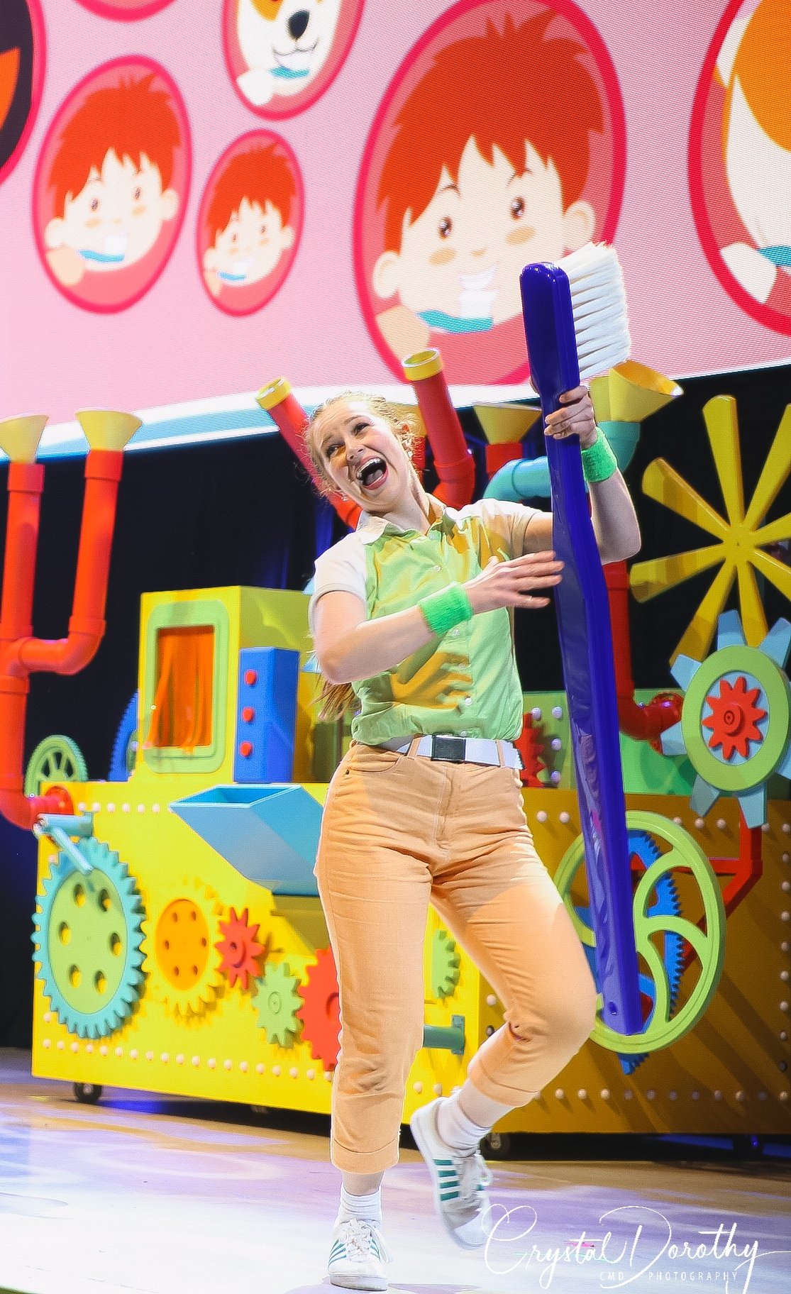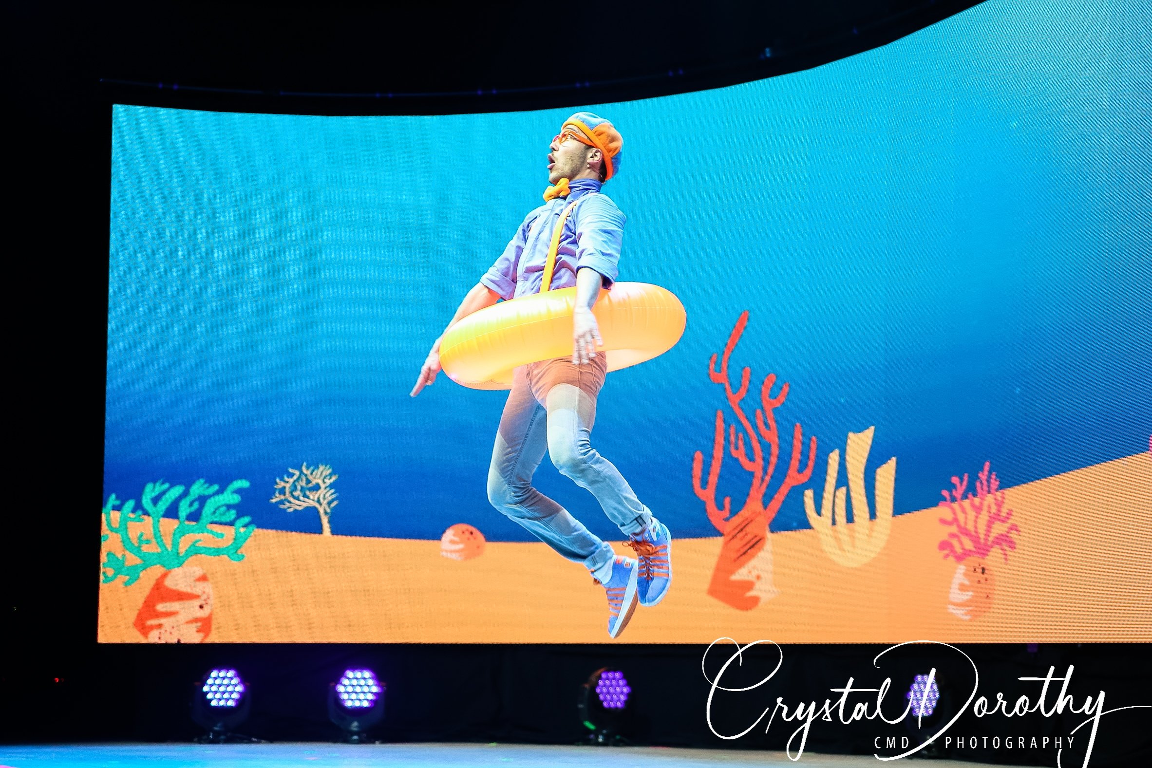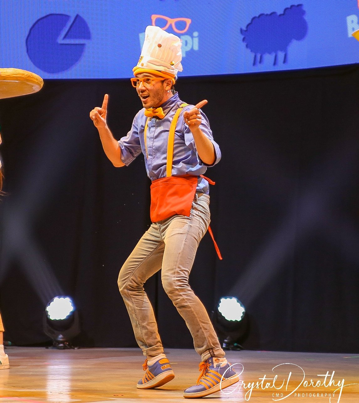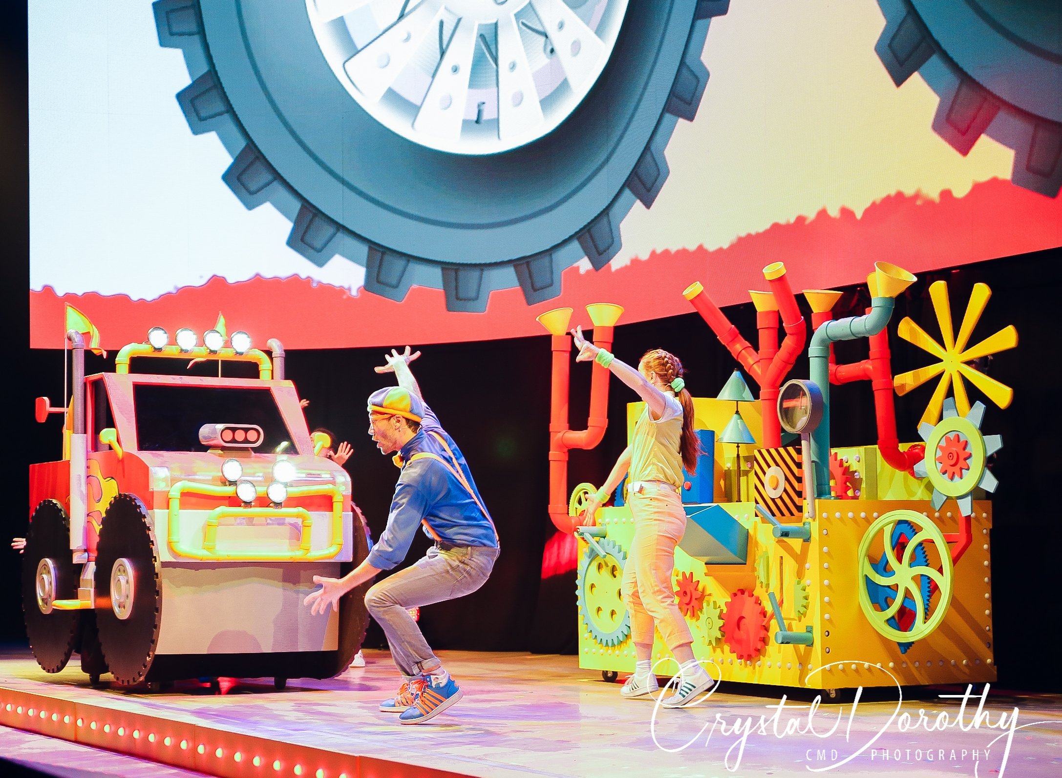 Tuesday night we had the opportunity to go see & review the newest addition to the “Blippi-verse,” Blippi Live. Needless to say, the kids were overjoyed. I was slightly nervous, wondering if they would realize that the “Blippi” they were seeing in person wasn’t actually Stevin John and I’d have to potentially defuse a bad situation. However, the gentleman that they chose to portray Blippi, was pretty spot on. If I hadn’t spent more hours than I’d like to admit staring at the “real” Blippi, (thanks to Finn for watching him on repeat), I’d likely never know the difference. The kids were utterly entranced the entire time he was on stage.