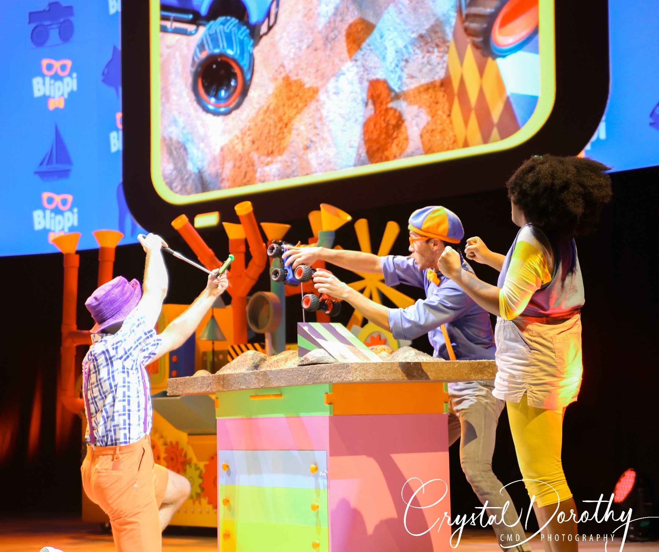 I honestly have to say, the actual show is pretty well put together. I mean obviously, as an adult, I wouldn’t attend without children, (sorry Blippi!), however the show was very high energy and had several cool elements. I was particularly impressed by how they incorporated things like live broadcasting when they showed off the toy monster trucks. It felt kind of like they were merging the live show with the YouTube show.